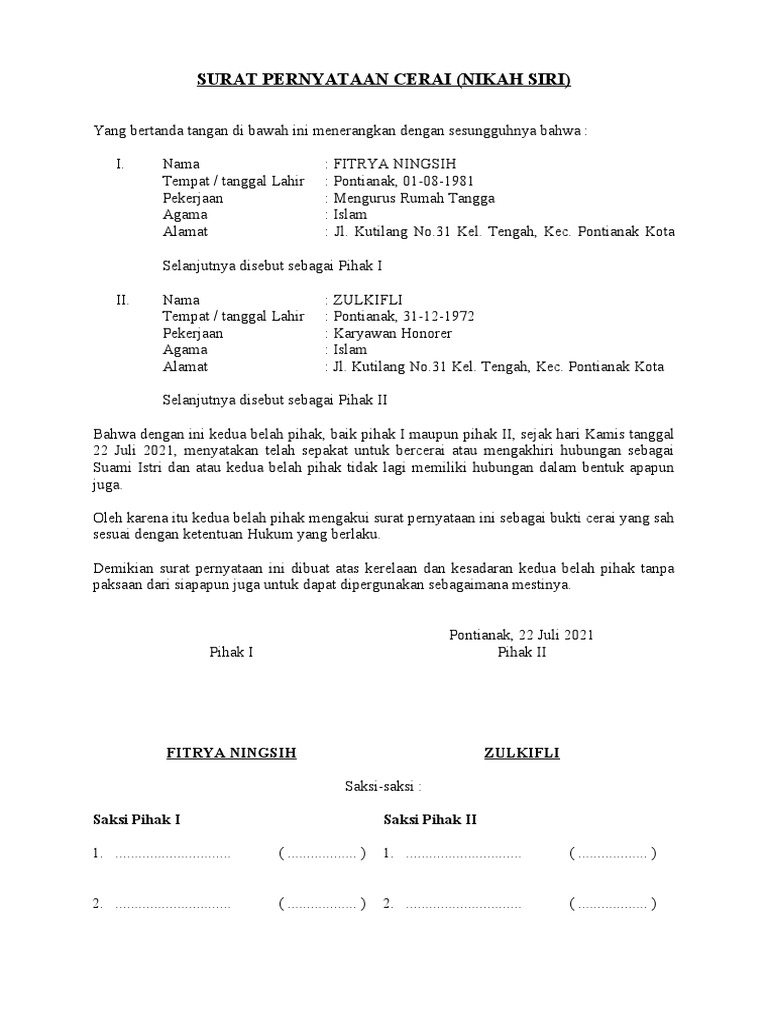 Surat Pernyataan Cerai Nikah Siri Pdf